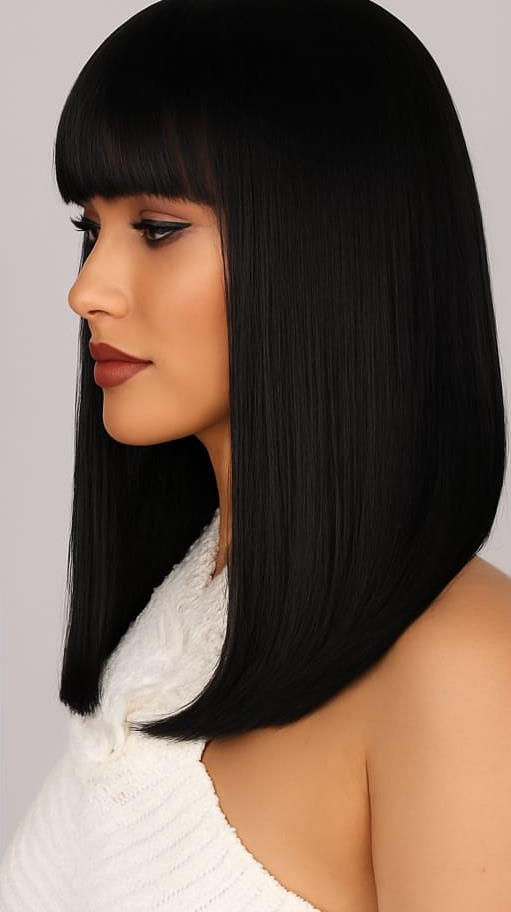 ✓ Coupe : carré mi-long avec frange